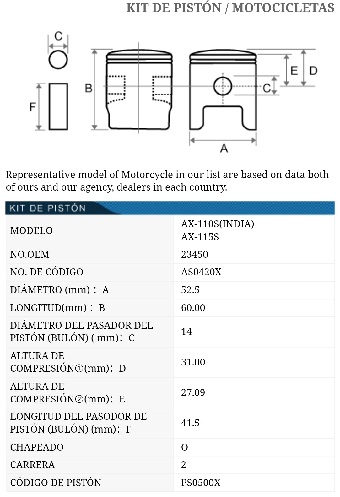 Pistón Kit para moto Suzuki AX115 en Marca TKRJ Japones Alta Durabilidad incluye Pistón, Rines, pasador y vinchas
